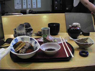 Despite all my years in Japan, I'm not a big fish fan. I've learned to tolerate sushi over the years because it's boneless and the taste is largely absorbed by the soy sauce and the wasabi. The fried fish I'm not such a big fan of, but I had promised my friend I would try it so I did my best to dig out all the meat from in between those tiny fishbones with my chopsticks.
